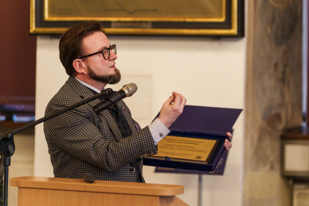 Najważniejszym odznaczeniem został uhonorowany prof. Waldemar Tłokiński. „Za pełną zaangażowania działalność na rzecz rozwoju Wydziału Nauk Społecznych, a także za nieustające wspieranie Uniwersytetu Gdańskiego oraz budowanie pozytywnego wizerunku naszej Alma Mater” Rektor UG wręczył prof. dr. hab. Waldemarowi Tłokińskiemu Złoty Medal Uniwersytetu Gdańskiego DOCTRINAE SAPIENTIAE HONESTATI.