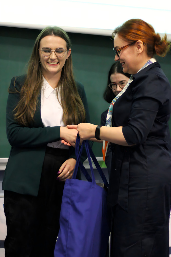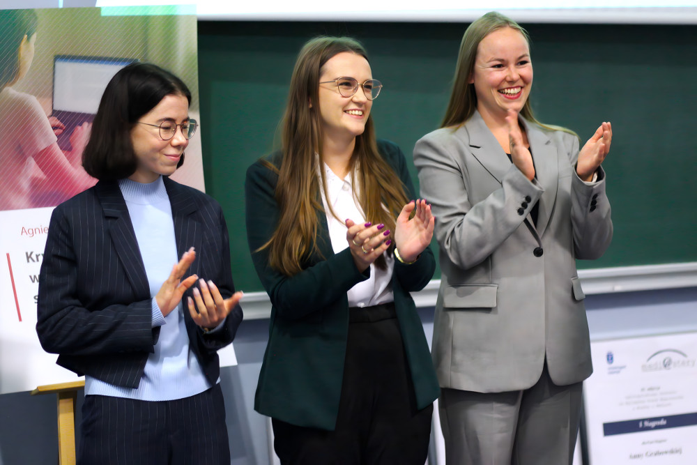 The third prize went to Agata Myszka for “Changes in the Language of Polish Job Advertisements 1995–2024. A Comparative Analysis” (supervisor: Assoc. Prof. Magdalena Hodalska, Jagiellonian University). Awards were presented by Prof. Małgorzata Łosiewicz and Assoc. Prof. Anna Ryłko-Kurpiewska, Deputy Director of the Institute. The discussion with the laureates was led by Paulina Kozień, a journalism student at UG. The first-prize winner’s thesis is traditionally published as a book, and during the ceremony, a fragment from the previous year’s winning work was read: Agnieszka Kurpias’s “Literary Criticism in Social Media” (supervisor: Prof. Iwona Hofman, Maria Curie-Skłodowska University, Lublin).