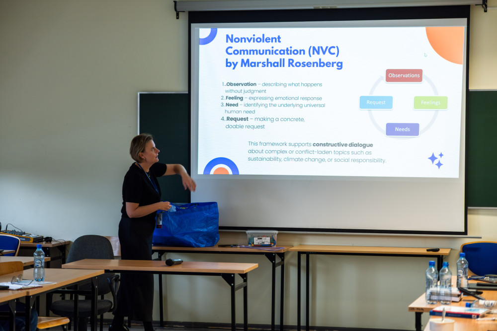 At the end of the session, participants joined a workshop titled “Nonviolent Communication: How to Talk About Sustainable Development?” led by Dr Agata Rudnik from the Institute of Psychology at the University of Gdańsk.